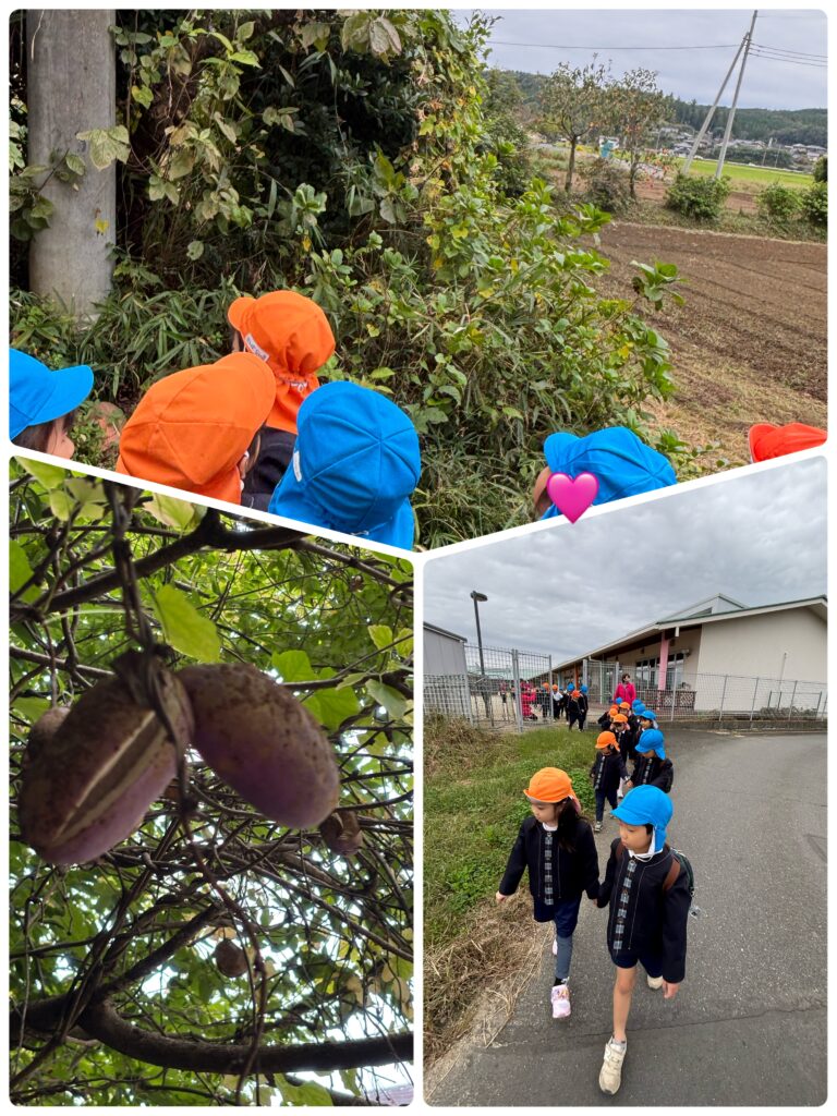 アケビや柿の実、カラスウリを見つけたり、畑の作物を見て発見の連続でした👀