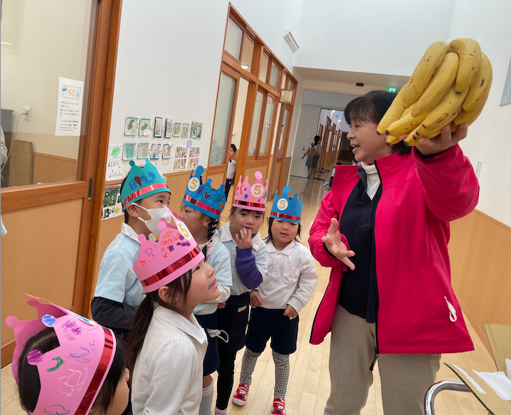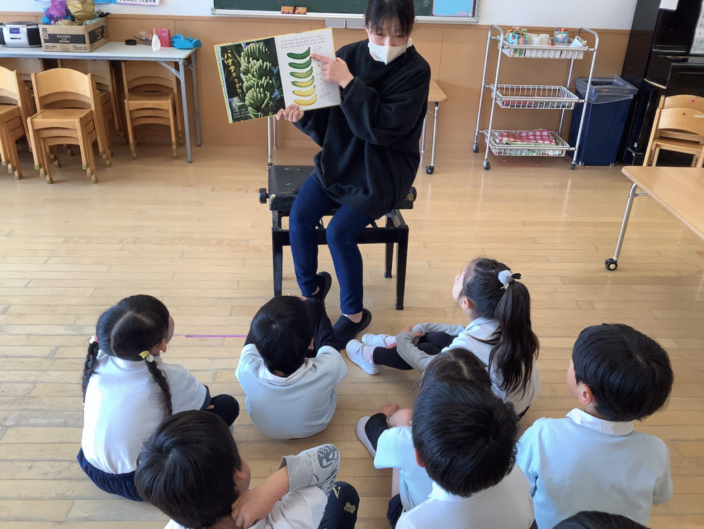 『台湾からきたバナナだよ!』とお話ししても『・・・??』な子どもたちでしたが、バナナの絵本を読んであげると食べ慣れたバナナの秘密をたくさん知る機会となり、今回の寄贈が学びにつながりました!