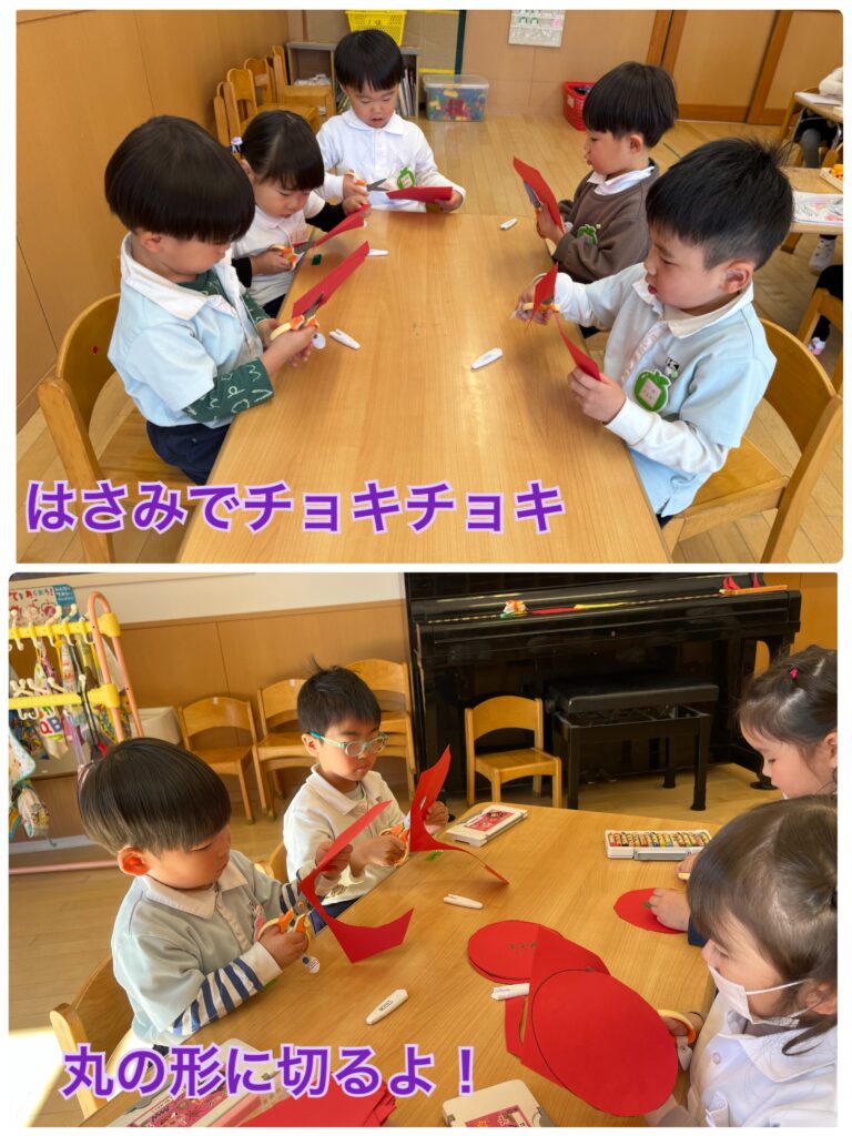 「はさみやる✂️!」とやる気満々🎵はさみを使う時の顔はとても真剣な子どもたち。