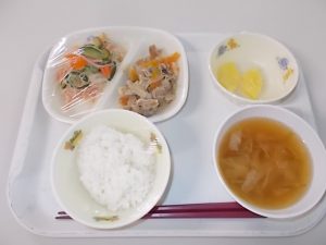 7月30日(火)給食 2019 7/30 ニュース ごはん 豚のショウガ炒め 春雨サラダ パイン缶 みそ汁(キャベツ・豆腐・長ねぎ)。 年長組さんの給食の様子です。 今日もおいしく頂きました^ ^ ニュース URLをコピーしました! 7月30日(火) 子どもたちの様子(年少組・年中組・年長組) 7月31日(木)年中さんの様子 コメント コメントする コメントをキャンセルコメント ※ 名前 ※ メール ※ サイト 次回のコメントで使用するためブラウザーに自分の名前、メールアドレス、サイトを保存する。 上に表示された文字を入力してください。 Δ
