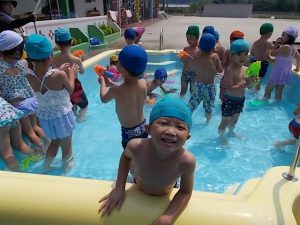 お友達と水かけっこをしたり、泳いだりしながら「気持ちいい〜!」と楽しそうな子どもたちでした☆