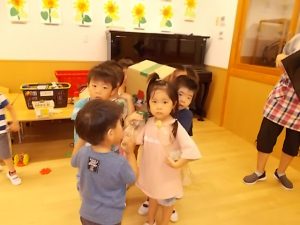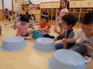 年少さんは、夏祭り!  太鼓をたたいて おみこおしかついで
