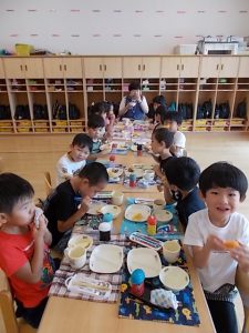 ぞう組さんのクラスに園長先生がお給食を食べにきましたよ〜^ ^