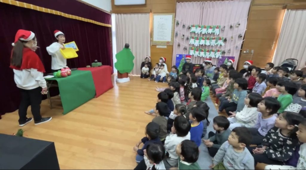 保育園にもサンタさんがプレゼントを持ってきてくれました!マジックを見たり、歌を歌ったりと楽しい時間を過ごしました。