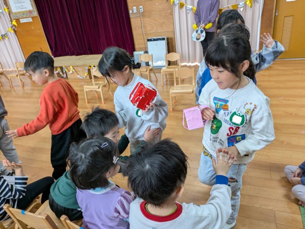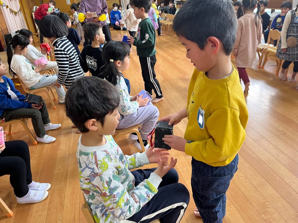 ありがとう会では、もうすぐ卒園の年長さんにありがとうの気持ちを込めてプレゼントを贈る素敵な会となりました♪