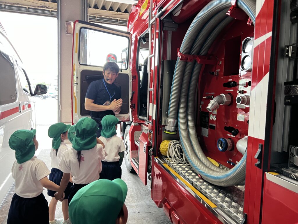 学んだり、消防署内を探検し実際に救急車や消防車に乗せてもらったりと貴重な体験をすることができました。