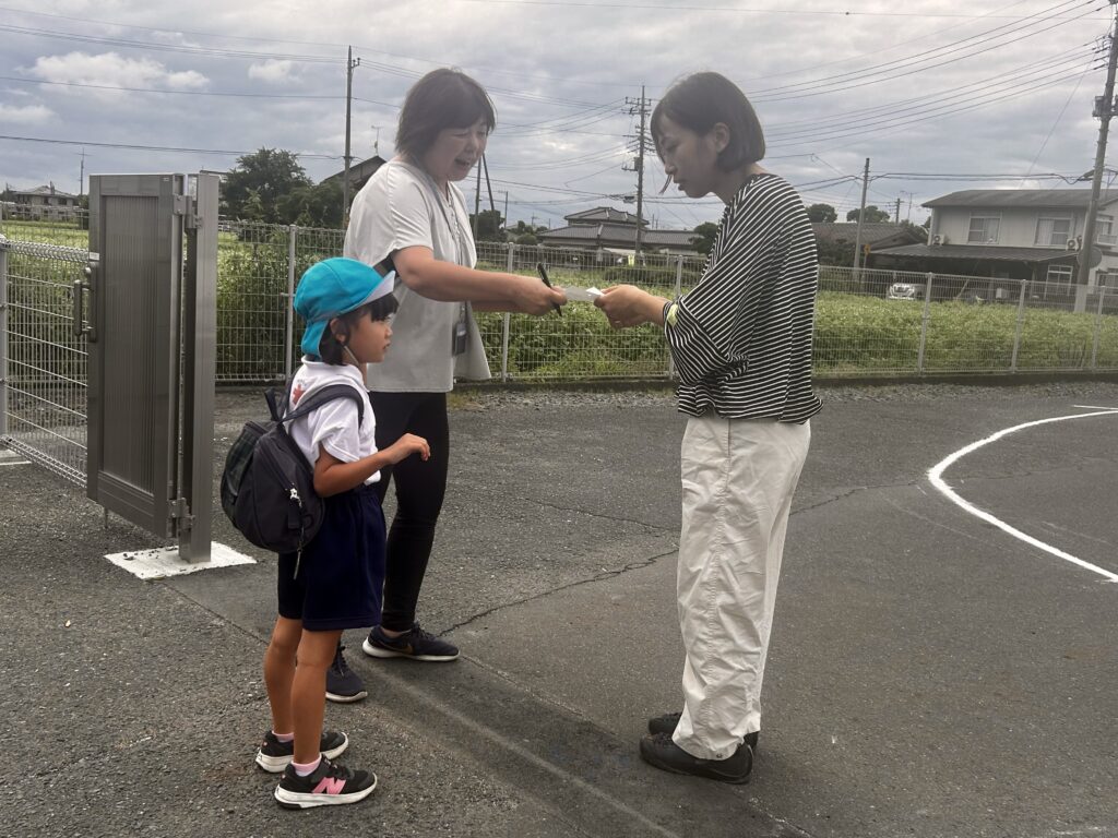 9月12日(金)に引き渡し訓練を行いました。時間内でのお迎えに保護者の方のご協力をいただきスムーズに進めることが出来ました。ありがとうございました。災害時に慌てずに避難できるように活かしていきたいと思います。