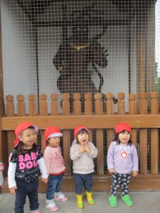 みんなでお散歩(1歳児) 2017 10/24 ニュース 今日は、初めて引接寺までお散歩です。お寺に着くと、お地蔵様を見つけ、両手を合わせ「のんのん・・・」とお参りをしました。更に奥の方へ歩いていくと大きな怖い像を発見!!じーっと見て、大きな口を開けたりつぐんだり像の前でまねをしていました。 ニュース URLをコピーしました! お散歩にしゅっぱ〜つ(2歳児) 散歩(4歳児) コメント コメントする コメントをキャンセルコメント ※ 名前 ※ メール ※ サイト 次回のコメントで使用するためブラウザーに自分の名前、メールアドレス、サイトを保存する。 上に表示された文字を入力してください。 Δ