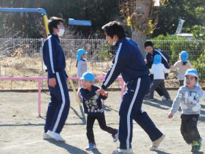 那珂二中生徒の交流会 2017 12/12 ニュース 本日、那珂二中3年生が家庭科の授業として保育園へ来園しました。中学生が子供たちと手作りおもちゃで遊んだり、鬼ごっこや追いかけっこをしてくれました。「肩車して!」とのリクエストに応えてくれ、笑顔がいっぱいでした。 ニュース URLをコピーしました! 宅急便ごっこ(1歳児) 園舎裏で(3・4歳児) コメント コメントする コメントをキャンセルコメント ※ 名前 ※ メール ※ サイト 次回のコメントで使用するためブラウザーに自分の名前、メールアドレス、サイトを保存する。 上に表示された文字を入力してください。 Δ