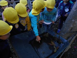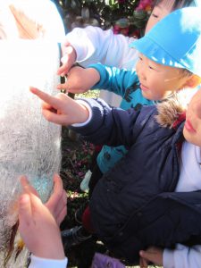 園舎裏で(3・4歳児) 2017 12/15 ニュース 毎日寒い日が続いていますが、子どもたちは元気いっぱいです!!今日は園舎裏に探検へ行くと大きな氷を発見し「窓ガラスみたい」と言って顔を近づけたり、「スケートの氷みたい」と氷の表面を触ったり大興奮です。季節の変化を見て触れて感じています。 ニュース URLをコピーしました! 那珂二中生徒の交流会 交通安全教室(5歳児) コメント コメントする コメントをキャンセルコメント ※ 名前 ※ メール ※ サイト 次回のコメントで使用するためブラウザーに自分の名前、メールアドレス、サイトを保存する。 上に表示された文字を入力してください。 Δ