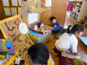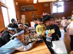 今日は、お買い物ごっこの開店日!ぬかっぽさんから5歳児みんなで買い物ごっこをしました。つき組はアイスクリーム屋さん!そら組はハンバーガー&ポテト、おすし屋さん!にじ組はおもちゃ屋さん!を・・・。