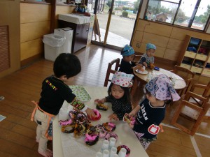 ドーナッツ屋さんごっこ(1歳児) 2015 10/30 ニュース 運動会の親子競技で使ったドーナツ・・・おままごとごっこで大活躍!!「く〜ださい」「どうぞ!」など、言葉のやりとりがたくさん出ています。 ニュース URLをコピーしました! お芋掘り パート2 Happy Halloween (今日のおやつ) コメント コメントする コメントをキャンセルコメント ※ 名前 ※ メール ※ サイト 次回のコメントで使用するためブラウザーに自分の名前、メールアドレス、サイトを保存する。 上に表示された文字を入力してください。 Δ