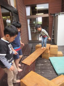 大型積み木(5歳児) 2018 5/08 ニュース 中庭テラスで「公園を作ろう」「温泉もいいな。」とイメージを共有しながら大型積み木で遊んでいました。温泉に入った後には…「ベッドを作ってお昼寝しよう。」とベッド作りになり「今日のお昼寝は・・ここで寝よう!」と自分の作った寝床で午睡です。 ニュース URLをコピーしました! 今日のおやつ こいのぼり完成!!(4歳児) コメント コメントする コメントをキャンセルコメント ※ 名前 ※ メール ※ サイト 次回のコメントで使用するためブラウザーに自分の名前、メールアドレス、サイトを保存する。 上に表示された文字を入力してください。 Δ