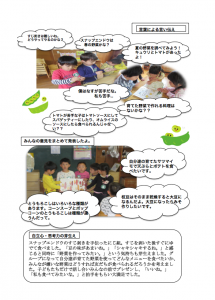 スナップエンドウ(5歳児) 2018 5/10 ニュース 月曜日にスナップエンドウのすじむきの手伝いをしました。この活動からいろいろな子供の姿が見られました。 ニュース URLをコピーしました! なんの卵かな?(4歳児) 大型積み木をつかって…(4歳児) コメント コメントする コメントをキャンセルコメント ※ 名前 ※ メール ※ サイト 次回のコメントで使用するためブラウザーに自分の名前、メールアドレス、サイトを保存する。 上に表示された文字を入力してください。 Δ