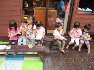 遠足ごっこ(3歳児) 2018 5/22 ニュース つき組さんでは先週から遠足ごっこが盛り上がっています。 始めは椅子をバスに見立ててバスごっこ、次第にお弁当が欲しい!と声が上がり、自分のお弁当も作りました。今日は、大型積み木で作った公園におでかけ!最後はみんなでお弁当タイムになりました。 ニュース URLをコピーしました! 短大のお姉さんと一緒に(3・4歳児) ヤマト交通安全教室(4・5歳児) コメント コメントする コメントをキャンセルコメント ※ 名前 ※ メール ※ サイト 次回のコメントで使用するためブラウザーに自分の名前、メールアドレス、サイトを保存する。 上に表示された文字を入力してください。 Δ