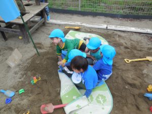 スコップをつかって…(4歳児) 2018 5/25 ニュース 穴づくりがはじまりました。「こっちほって!あっちもほろう!!」と友達と話しながらすすめています。その後「穴にはいろう!」と落とし穴になっていました。 ニュース URLをコピーしました! すきなもの(0歳) おいしく出来たよ(3歳児) コメント コメントする コメントをキャンセルコメント ※ 名前 ※ メール ※ サイト 次回のコメントで使用するためブラウザーに自分の名前、メールアドレス、サイトを保存する。 上に表示された文字を入力してください。 Δ