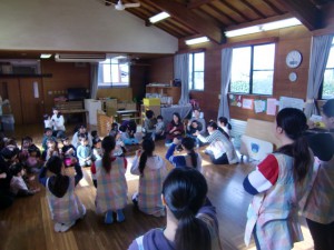 親子広場ぬっかぽ(リズムの宝箱) 2015 11/17 ニュース リズムの宝箱では、茨城女子短期大学の学生がきてくださり歌をうたったり体を動かしたりと楽しいリズムの時間を過ごしています。 今日は、ドレミマットで遊びました。足でマットを踏むとドレミの音が鳴ります。リズムの宝箱ではお楽しみがたくさんです ニュース URLをコピーしました! リトミック♬(年長児) 交通公園 コメント コメントする コメントをキャンセルコメント ※ 名前 ※ メール ※ サイト 次回のコメントで使用するためブラウザーに自分の名前、メールアドレス、サイトを保存する。 上に表示された文字を入力してください。 Δ