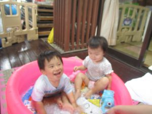 湯水遊び 0歳 2018 7/20 ニュース プールにお湯を入れて湯水遊びをしました。水面をたたいたり、ジョウロでシャワー。水の感触を楽しみました。 顔に水がかかっても平気で笑顔ではしゃいでいました。 ニュース URLをコピーしました! 水遊びごっこ(1歳児) 初プール(2歳児) コメント コメントする コメントをキャンセルコメント ※ 名前 ※ メール ※ サイト 次回のコメントで使用するためブラウザーに自分の名前、メールアドレス、サイトを保存する。 上に表示された文字を入力してください。 Δ