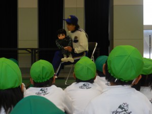 室内では、『こうちゃん』と言う腹話術人形とのやりとりを楽しみながら学んだことを確認しました。