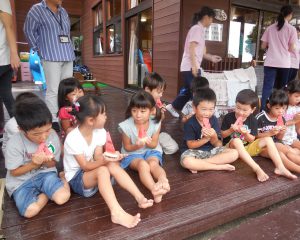 プールじまい(3・4・5歳児) 2018 8/28 ニュース プールじまいでは、クラスごとに出来るようになったことを発表!また、約束をまもってできたご褒美にみんなでスイカを食べました。今年も安全に行うことができました。 ニュース URLをコピーしました! 水泳大会(5歳児) お泊り保育の様子(5歳児) コメント コメントする コメントをキャンセルコメント ※ 名前 ※ メール ※ サイト 次回のコメントで使用するためブラウザーに自分の名前、メールアドレス、サイトを保存する。 上に表示された文字を入力してください。 Δ