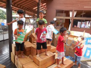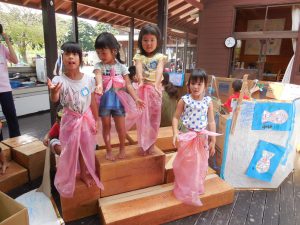 うらしまたろうごっこ(4歳児) 2018 9/04 ニュース 海の中の生き物づくりから、うらしまたろうの物語の世界にはいっていったそら組さん。「ダンスパーティーしよう!」と大型積み木でステージを作り、おとひめさまとうらしまたろうになりきり「カーモンベイビーアメリカ!!」とおどっています。 ニュース URLをコピーしました! 国体ダンス・3B体操(4・5歳児) コスモスパーティー(4・5歳児) コメント コメントする コメントをキャンセルコメント ※ 名前 ※ メール ※ サイト 次回のコメントで使用するためブラウザーに自分の名前、メールアドレス、サイトを保存する。 上に表示された文字を入力してください。 Δ