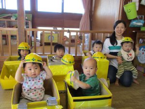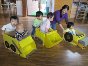 0歳児 ゆめ組 集合! 2018 10/12 ニュース 今日は、みんなで安全第一。はたらく車でドライブです。クレーン車、ロードローラー、ショベルカー、お気に入りの車に乗って出発です!お友達の乗った車を押してあげようとする姿も見られています。 ニュース URLをコピーしました! お米の脱穀・精米(5歳児) 海浜公園遠足(2歳児) コメント コメントする コメントをキャンセルコメント ※ 名前 ※ メール ※ サイト 次回のコメントで使用するためブラウザーに自分の名前、メールアドレス、サイトを保存する。 上に表示された文字を入力してください。 Δ