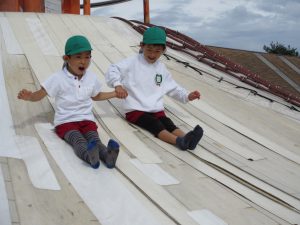 お天気が心配でしたが海浜公園へ遠足に行くことができました。自転車を借りてみはらしの丘へGO!・・・友達と一緒にサイクリングを楽しみ、互いに「がんばれー!!」「あと少しだよ!!」と励ましあいながら自転車に挑戦しました。みはらしの丘に到着し自転車を駐輪所に一旦停車して、紅葉が始まったコキアやコスモスを見てきました。お昼はたまごの森で仲良く食べ、その後はおもしろチューブで思いっきり遊び楽しい遠足でした!!