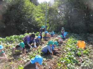 いもほり(4・5歳児) 2018 10/24 ニュース 今日は、年長児が育てたお芋を堀りに行きました。にじ組さんとそら組さんで協力して掘ったお芋。大きく成長したお芋にびっくり!!収穫したおいもを園庭に並べるとさらにびっくり!!園庭のトラック2周分ものお芋がとれました。 ニュース URLをコピーしました! 筑波山親子遠足(5歳児) 身体表現遊び(3、4歳児) コメント コメントする コメントをキャンセルコメント ※ 名前 ※ メール ※ サイト 次回のコメントで使用するためブラウザーに自分の名前、メールアドレス、サイトを保存する。 上に表示された文字を入力してください。 Δ