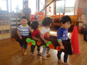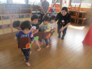 電車ごっこ(1歳児) 2018 10/26 ニュース 絵本の『ガタンゴトン』の電車が大好きです。『ガタンゴトン』の掛け合いや『のせてくださ〜い』と関わりを楽しんでいます。手作り電車に乗ってお友達の名前を呼んだり、手を引いて誘ったりしながら”友達と同じ遊びをする”喜びを味わっています。 ニュース URLをコピーしました! きしゃごっこ(4歳児) きしゃごっこの中で…(4歳児) コメント コメントする コメントをキャンセルコメント ※ 名前 ※ メール ※ サイト 次回のコメントで使用するためブラウザーに自分の名前、メールアドレス、サイトを保存する。 Warning: Trying to access array offset on false in /home/c3936434/public_html/taisei.ac.jp/tgnn/wp-content/plugins/siteguard/really-simple-captcha/siteguard-really-simple-captcha.php on line 353 上に表示された文字を入力してください。 Δ