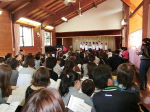 秋晴れのもと、元気いっぱいのにじ組さんの歌声が響き、新しい園歌を、たくさんの保護者の皆さまに聞いて頂く事が出来ました。お忙しい中、ありがとうございました。今後は、さまざまな行事に歌い親しみ継いでいきたいと思います。よろしくお願いします。
