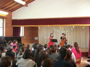 ファミリーコンサートでは、フルートとチェロの奏者においで頂き、本物の楽器の音色にたくさん触れる事が出来ました。楽器の仕組みや音の強弱の面白さなど、生演奏ならではの楽しいプログラムに子どもたちだけでなく、会場中が魅了された素敵な時間となりました。