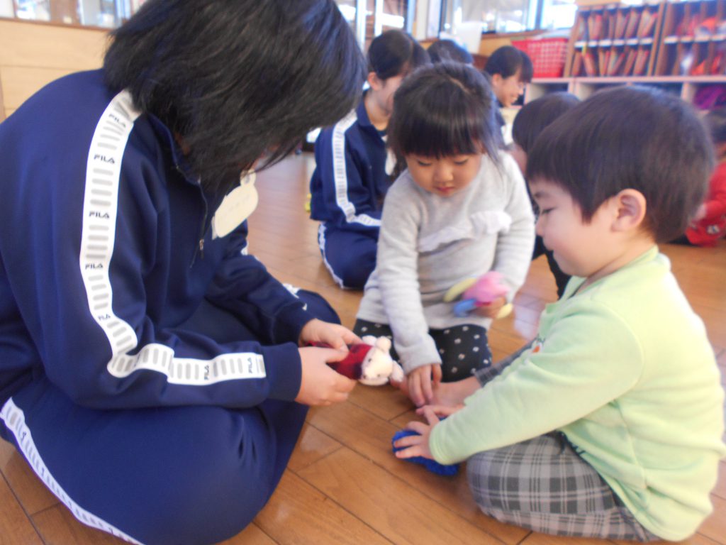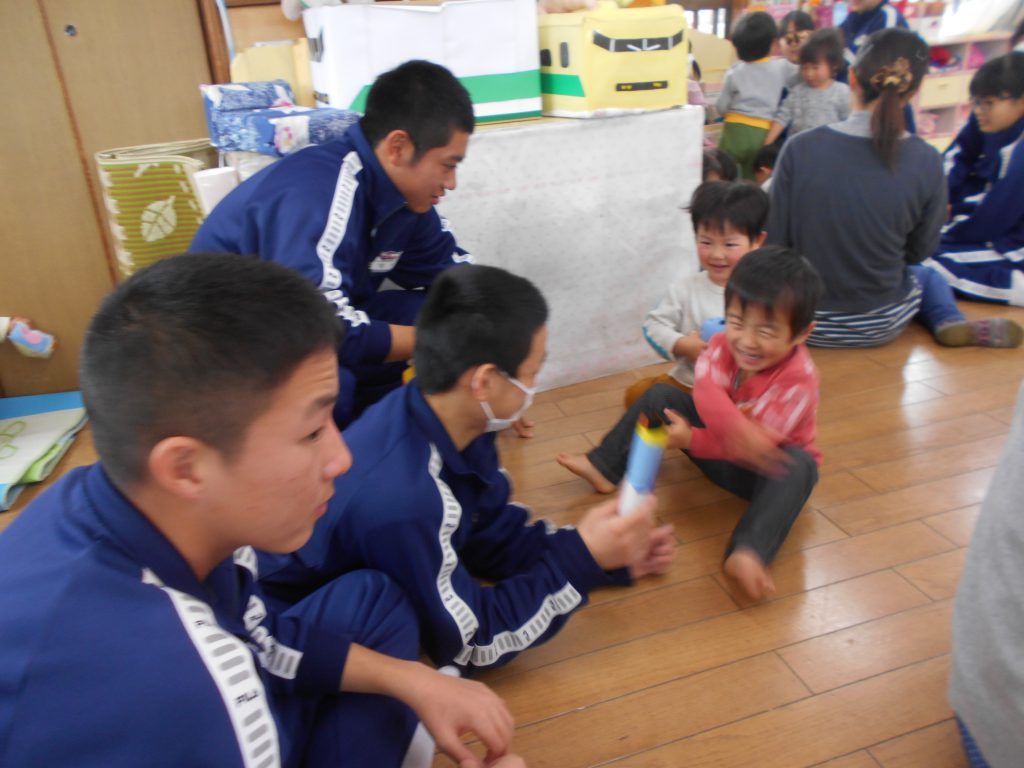 那珂二中生との触れ合い(1、2歳児) 2018 12/14 ニュース 12月12日、14日と那珂二中生が遊びに来てくれました。中学生の手作りおもちゃに興味津々で夢中になって遊びました。特にボールや人形がお気に入りで、たくさん甘えて触れ合うことができました。 ニュース URLをコピーしました! 那珂二中生との交流(5歳児) 葉っぱでなにする?(4歳児) コメント コメントする コメントをキャンセルコメント ※ 名前 ※ メール ※ サイト 次回のコメントで使用するためブラウザーに自分の名前、メールアドレス、サイトを保存する。 上に表示された文字を入力してください。 Δ