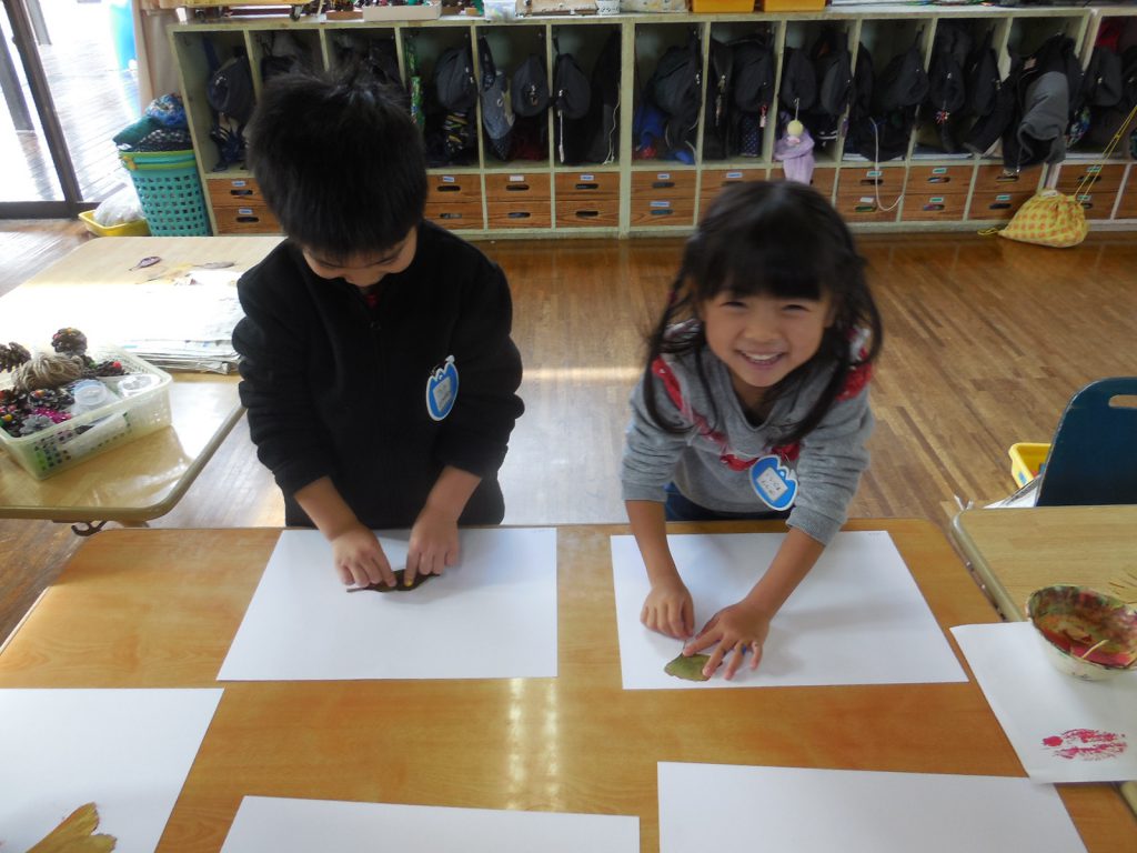 葉っぱでなにする?(4歳児) 2018 12/17 ニュース 園庭にでると、落ち葉を見つけては集めていたそら組さん。「これでクリスマスの飾りを作る!」と絵具で色をつけスタンプをしました。スタンプ後の葉っぱの模様をみては「すごい」と喜びどんなクリスマスの飾りになるか楽しみです。 ニュース URLをコピーしました! 那珂二中生との触れ合い(1、2歳児) クリスマスリース作り(4歳児) コメント コメントする コメントをキャンセルコメント ※ 名前 ※ メール ※ サイト 次回のコメントで使用するためブラウザーに自分の名前、メールアドレス、サイトを保存する。 上に表示された文字を入力してください。 Δ