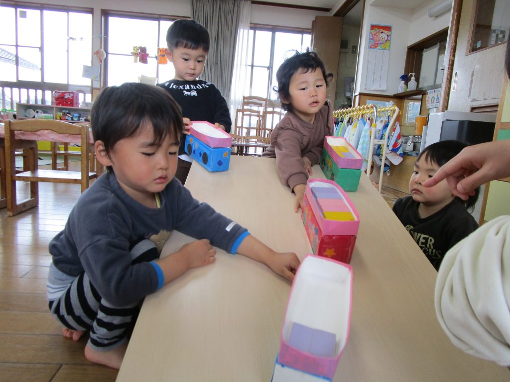 心配そうに見守り、声をかけてみたり、手をつなごうとしてみたり、遊びに誘ってみたり・・・。新しいお友だちが、それに応えてくれるととても喜んでいます。