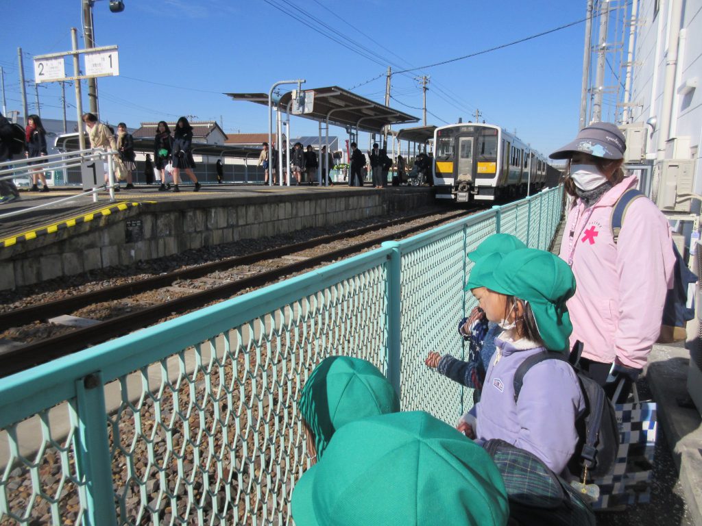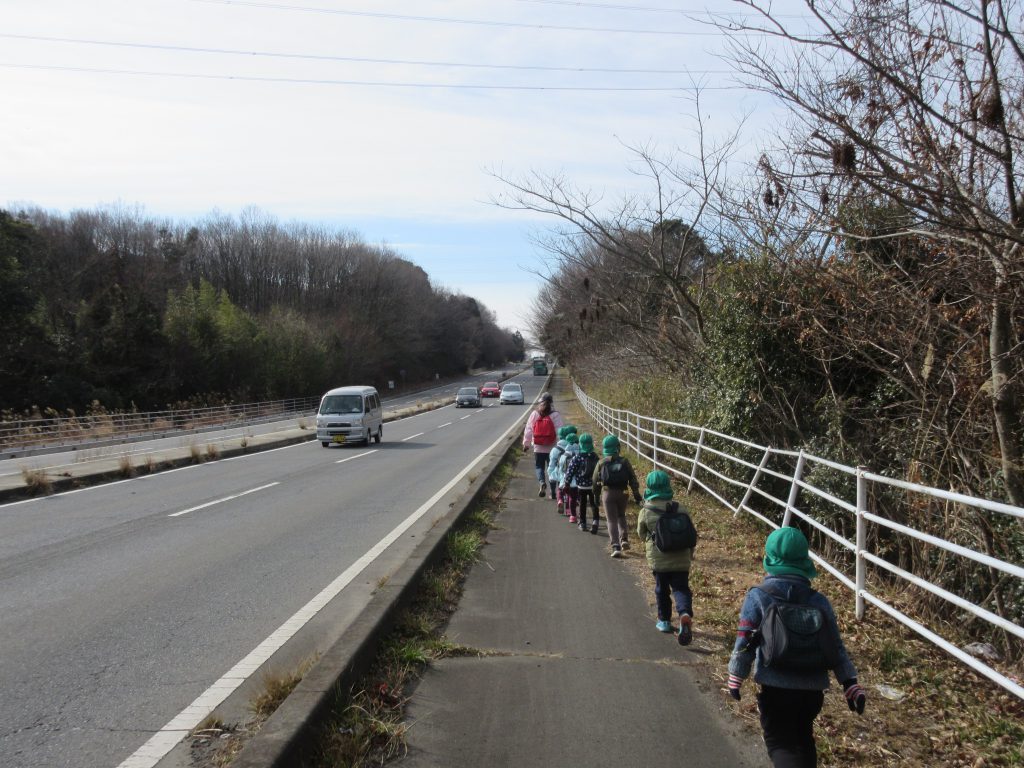交通ルールを守りながら一ノ関ため池親水公園へ行きました。長い道のりでしたが、道路の標識を見つけたり水郡線を見たりと色々な発見を楽しみながら歩いて行くことができました。公園に到着すると白鳥やカルガモなどたくさんの鳥がいて、子ども達は大興奮!!「白じゃない白鳥がいるよ!」「体は白いけど足は黒だったね」と気づきがたくさんありました。帰りは上菅谷駅から電車に乗って帰ってきました。