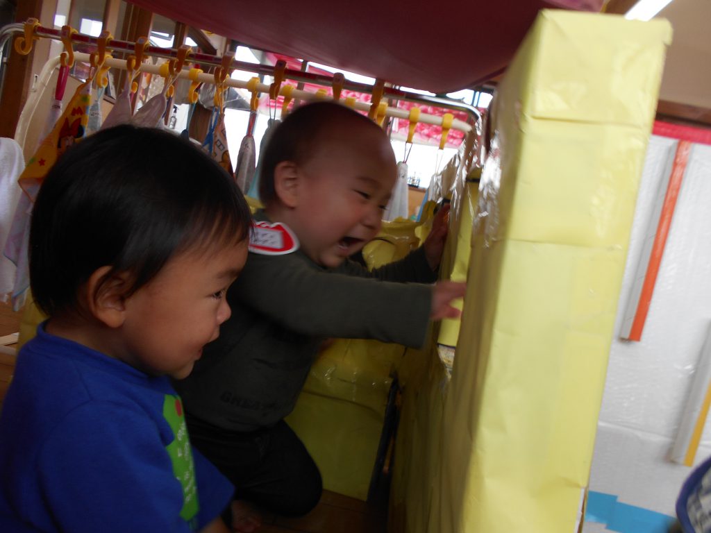 み~つけた!(1歳児) 2019 4/26 ニュース 小さいおうちを作ると、早速みんなで出たり入ったり・・・。お友達の顔を見つけて、「いたね~」と大喜びです。「もういいか~い?」「まだよ~」の声も聞かれ、見つけり、見つけられたりする繰り返しを楽しんでいます。 目次 ニュース URLをコピーしました! はじめてのクッキング(5歳児) こいのぼり製作(4歳児) コメント コメントする コメントをキャンセルコメント ※ 名前 ※ メール ※ サイト 次回のコメントで使用するためブラウザーに自分の名前、メールアドレス、サイトを保存する。 上に表示された文字を入力してください。 Δ