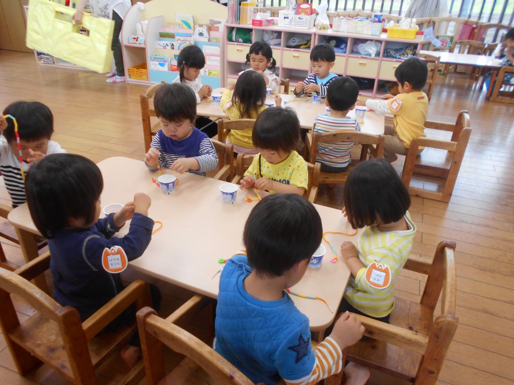 しっぽ作り(2歳児) 2019 5/21 ニュース 指先を器用に使い、ストロー通しに集中して取り組みました。完成するとズボンにかけて「ゾウさん!!」「かばさんといっしょ!」などと色々な動物になりきって遊んでいます。”動物のおしり”の絵本に興味津々しっぽ作りに集中が高まりました。 ニュース URLをコピーしました! 動物ごっこから(4歳児) 動物園づくりパート2(5歳児) コメント コメントする コメントをキャンセルコメント ※ 名前 ※ メール ※ サイト 次回のコメントで使用するためブラウザーに自分の名前、メールアドレス、サイトを保存する。 上に表示された文字を入力してください。 Δ