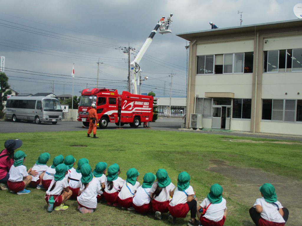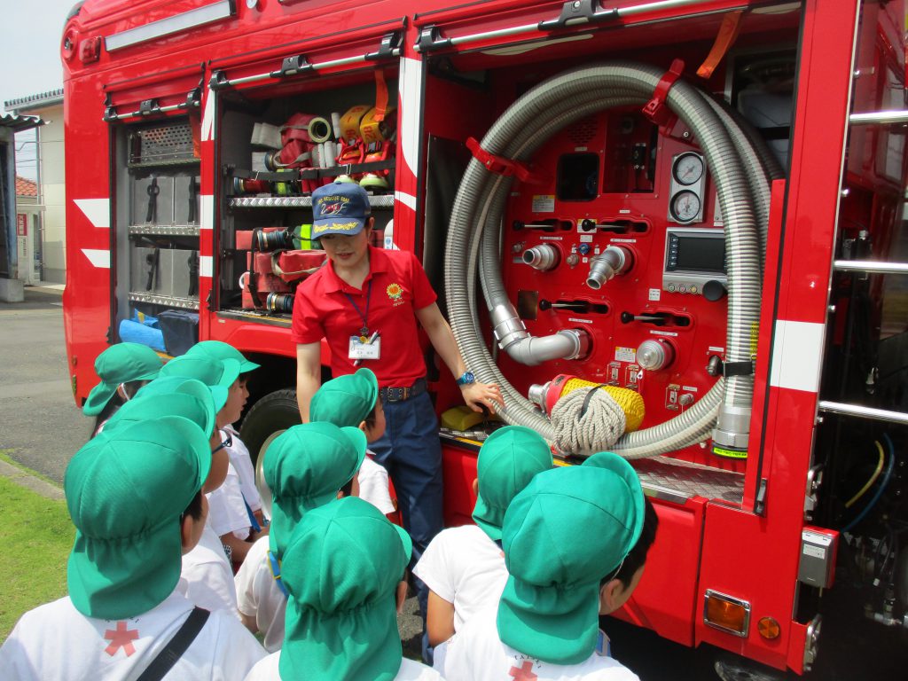 今日は消防署見学でした。レスキュー隊の救助訓練の様子を見たり、消防車や救急車の中になにがあるのか?教えてもらったり…貴重な体験ができました。園に帰ってからも、「人を助けているところがカッコよかった」「いろんな消防車があったね」と思い思いに感想を友達と話していました。