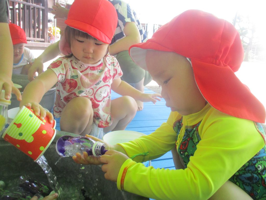 おいしいジュースできたよ。(1歳児) 2019 7/26 ニュース 水遊びが始まり、みんなでレンゲやカップを使って果物のジュースの出来上がり!!「ちょうだい」「どうぞ」友達とのやりとりをしながら、お友だちと夢中になって遊ぶ1歳児です!! ニュース URLをコピーしました! 一年生交流会(5歳児) 夏の遊び(4歳児) コメント コメントする コメントをキャンセルコメント ※ 名前 ※ メール ※ サイト 次回のコメントで使用するためブラウザーに自分の名前、メールアドレス、サイトを保存する。 上に表示された文字を入力してください。 Δ