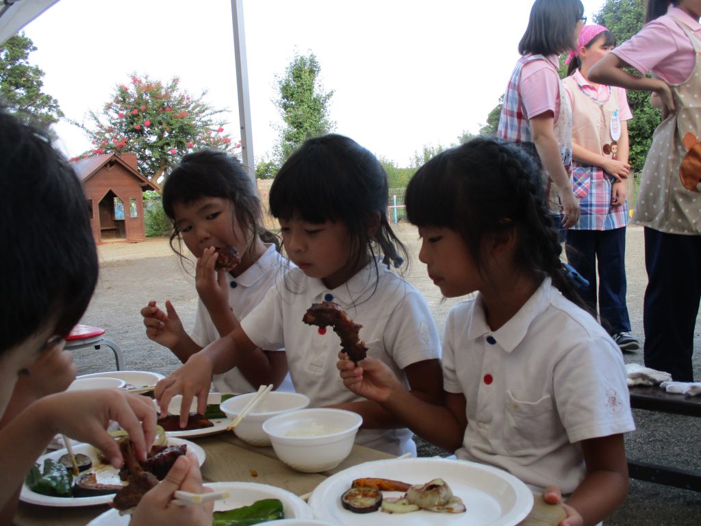 待ちに待ったお泊り保育の日!!みんなで夕食のお買い物にも行き、クッキングもしました。夕食はBBQを食べ、骨付き肉をガブリッ!!消防署の方の話をよく聞きながら、ルールを守って花火もしました。また、みんなで作ったプラネタリウムを見たり、最後は泡風呂に入り、楽しい一日を過ごすことができました。