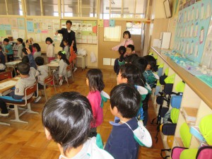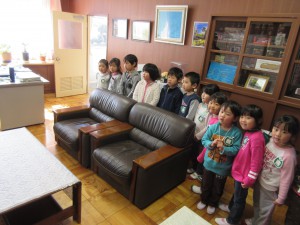 最後に校長室へ・・・元気にご挨拶して帰ってきました。他にも図書室で本を読ませていただいたり、音楽室や理科室へ案内していただきました。最初はドキドキしていた子供達ですが、帰り道には「あー楽しかった!!」とうれしそうに帰ってきました。