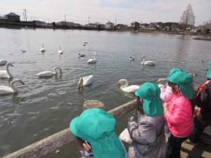 たくさん歩いて疲れたようですが、この時期にしか見られない白鳥を見ること、エサやりの体験などうれしい体験もたくさんできました。