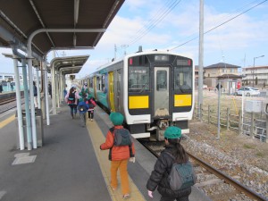 「きれいだねー。」「いろいろなひな人形があるね。」と目をキラキラさせていました。帰りは上菅谷駅から電車に乗りました。