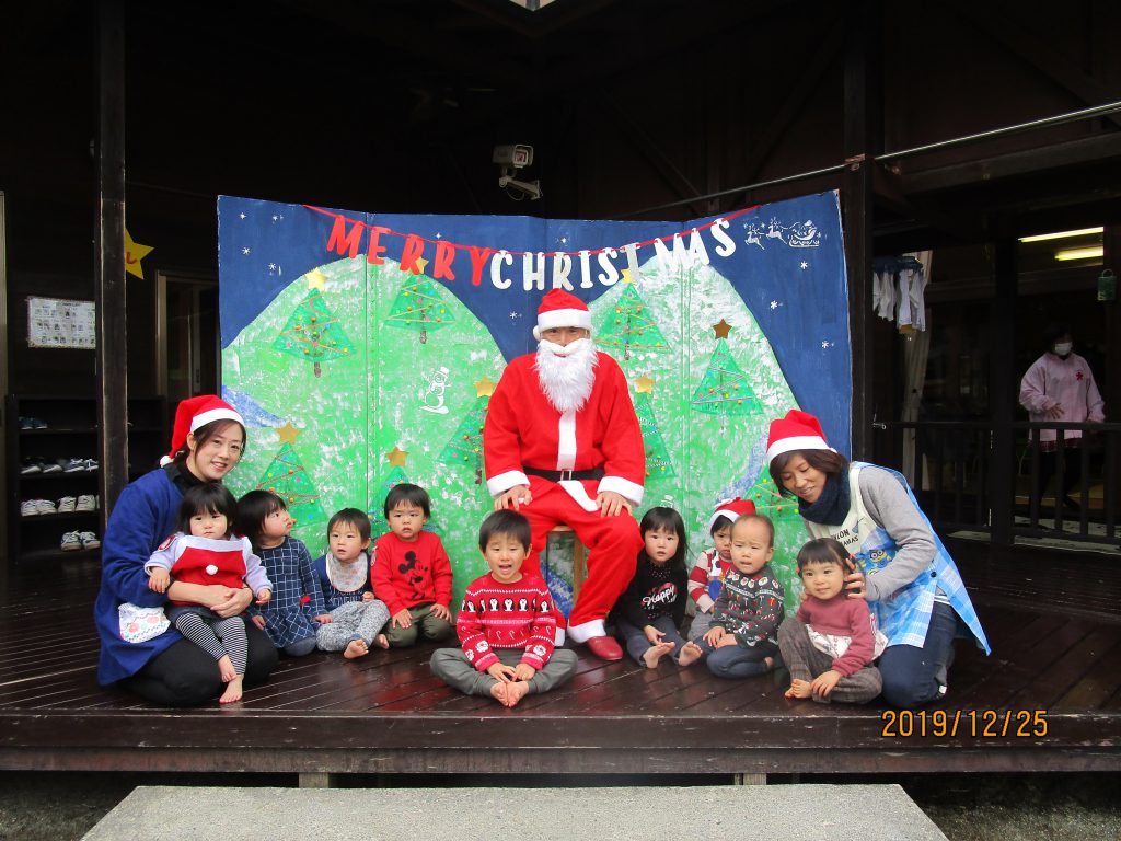 来てくれたサンタさんを見て、「わ~サンタさん来た!」とニコニコ。誰も泣かずに仲良く写真も撮りました。