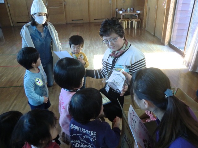 親子ひろば「ぬかっぽ」は、本日で今年度終了となりました。最終日に園長先生から絵本の読み聞かせをしてもらい親子で癒やしの時間を過ごしました。