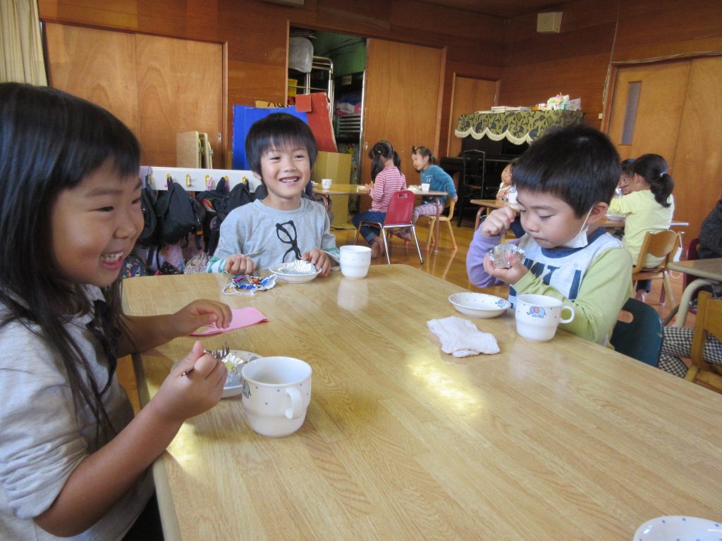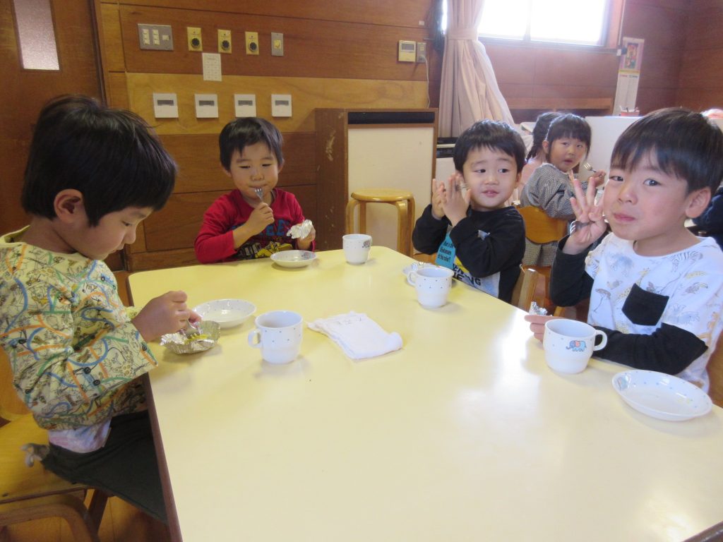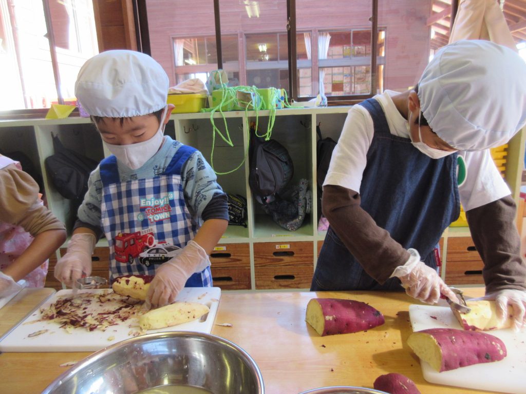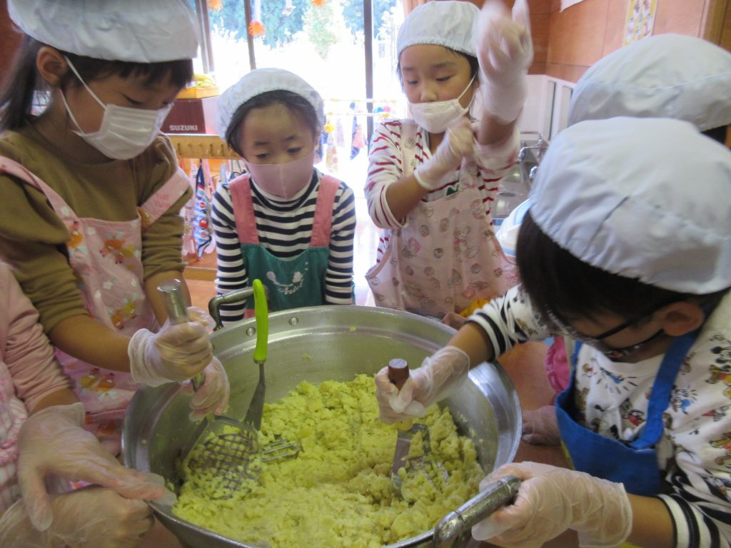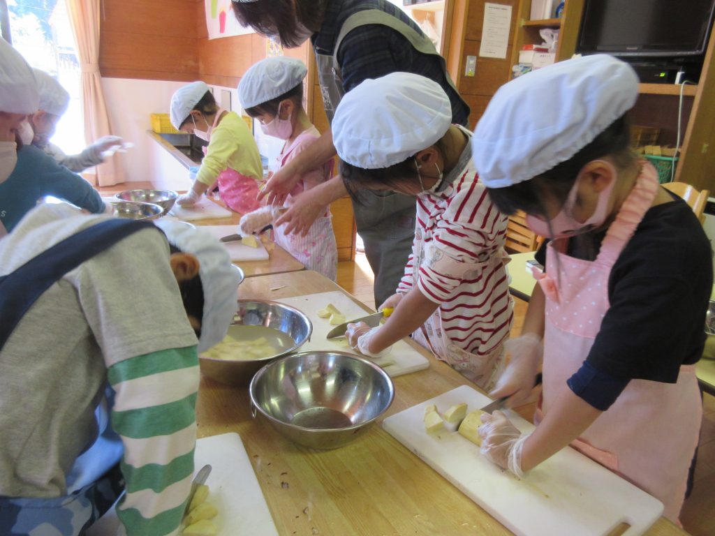 クッキング(5歳児) 2020 10/26 ニュース 先日掘ってきたお芋を使って、おやつを作りました。つき組・そら組にも「食べてもらいたい」と、沢山のお芋の皮を剥き、切ったり…クッキングも回数を重ねるごとにルールを守って調理器具をつかえるようになりました。 大きなお芋や形がふぞろいのお芋の皮を丁寧にむきました 「包丁で切る時は猫のて」「力を入れないときれないね。」と力を入れて切る姿もありました。 マッシャーで芋つぶし「力を入れないとつぶれないー」「おいしくなーれ!」 そら組さんに「にじさんが作ってくれたおやつ、すごくおいしいよ」と言われ「よかった!」と喜ぶ、にじ組さん 「おいしー!!」「もっと食べたいな。」とつき組さん。 ニュース URLをコピーしました! みんなでお散歩♪(2歳児) 鱗勝院にお散歩に行きました! (0歳児) コメント コメントする コメントをキャンセルコメント ※ 名前 ※ メール ※ サイト 次回のコメントで使用するためブラウザーに自分の名前、メールアドレス、サイトを保存する。 上に表示された文字を入力してください。 Δ