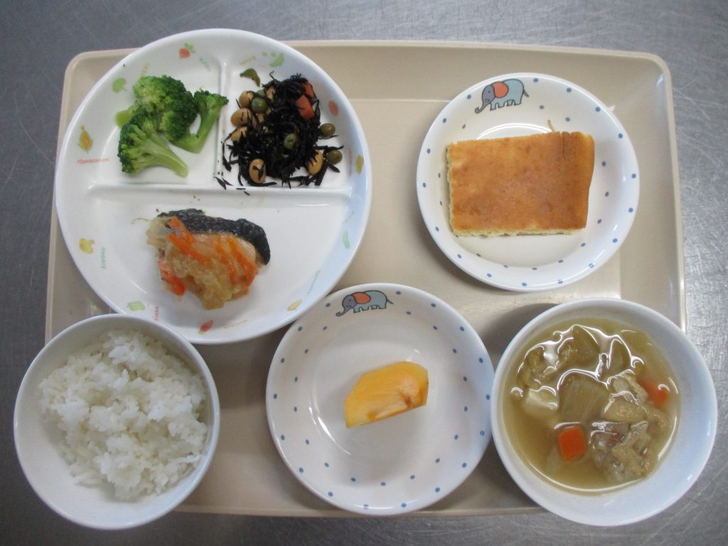 今日の給食 2020 11/16 ニュース <メニュー> サケのちゃんちゃん焼き・ボイルブロッコリー・ひじき豆・けんちん汁・ご飯・柿 けんちん汁がとても人気で、子どもたちはもりもりと食べていました。 野菜をみそで調理し、焼いたサケに載せました。 パイナップル缶をミキサーで細かくし生地の中に混ぜて焼きました。 ニュース URLをコピーしました! お弁当おいしかったね♡(2歳児) オータムコンサート コメント コメントする コメントをキャンセルコメント ※ 名前 ※ メール ※ サイト 次回のコメントで使用するためブラウザーに自分の名前、メールアドレス、サイトを保存する。 上に表示された文字を入力してください。 Δ