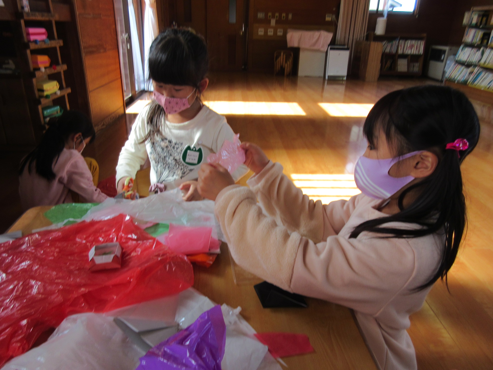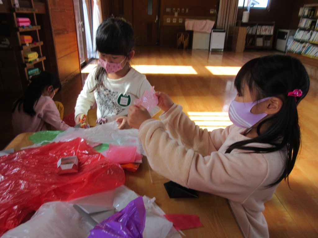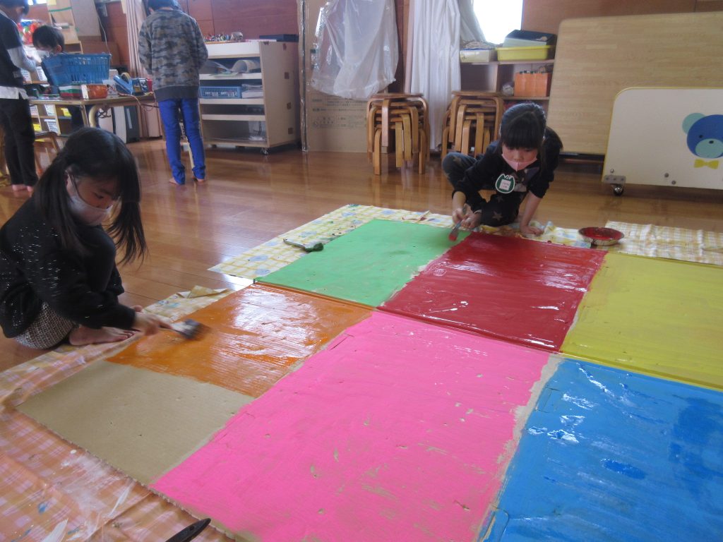 先月から「どんなお店屋さんにしようかな?」と友だちと考えたり、少人数のグループに「私は看板作るから、これよろしくね」と役割を決め進めていました。そして今週からクラスでお店屋さんごっこを展開中です。廃材で車のおもちゃを作り「おもちゃ屋さん」、洋服やアクセサリーを作り「これも素敵ですよ」と販売したりと楽しんでいます。 金曜日には4歳、3歳の小さなお客さんが来るので、楽しみにしているにじ組さんです。
