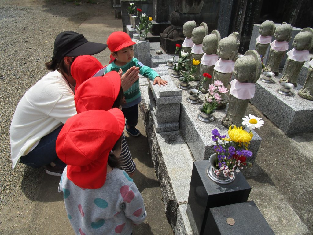 さんぽ♪(1歳) 2021 5/12 ニュース ゆめさんのお友だちと一緒に引接寺に散歩に行きました。道の脇に咲いている花を見つけて足を止めたり、アリの巣を見つけたり、短い距離でも発見がたくさんありました。 いつもと違う環境に興味津々で、気になる物を見つけると、指を差したり、「あ!あ!」と、短い言葉で一生懸命伝えてくれました。よーいドンをしたり、日なたぼっこをした後は、怖い像にバイバイ。そしてお地蔵様にお参りをして帰ってきました。 ニュース URLをコピーしました! ジャガイモ大きくな〜れ(5歳児) つき組探検隊!(3歳児) コメント コメントする コメントをキャンセルコメント ※ 名前 ※ メール ※ サイト 次回のコメントで使用するためブラウザーに自分の名前、メールアドレス、サイトを保存する。 上に表示された文字を入力してください。 Δ