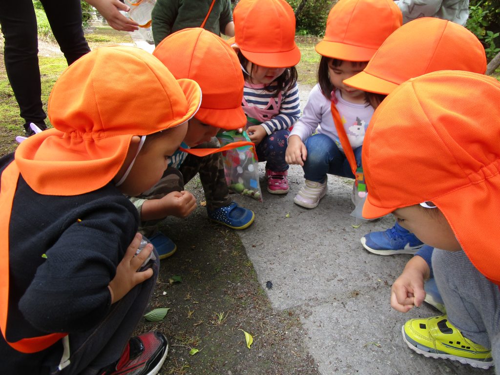 手をつないでいってきたよ(2歳児) 2021 5/13 ニュース 今日はいつもより遠いお寺まで行くぞ~と、お散歩バックを持って出発です。お友だちと手をつないで道路の端を頑張って歩きました。「どんなむしがいるかな?」「おまめ、おちてるかな?」木の実や虫との出会いに期待がふくらみます。 「なんだ、これ~??」保育園では見たことのない大きな黒い虫に夢中です。 小さな梅の実をたくさん見つけて「おまめだ~!!」「これでジュージューしたいな」と、いつも遊んでいるおままごとをリクエストする声も聞かれました。 またくるね~と、お礼を言って帰ってきました。 ニュース URLをコピーしました! つき組探検隊!(3歳児) リトミック(5歳児) コメント コメントする コメントをキャンセルコメント ※ 名前 ※ メール ※ サイト 次回のコメントで使用するためブラウザーに自分の名前、メールアドレス、サイトを保存する。 上に表示された文字を入力してください。 Δ